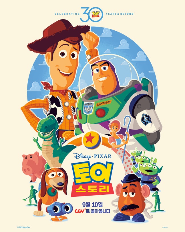 세계 최초 풀 3D 애니메이션으로 영화사에 한 획을 그은 <토이 스토리>가 개봉 30주년을 맞아 오는 9월 10일 CGV 단독 개봉을 확정했다.