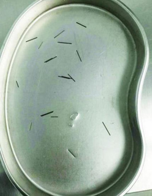 병원은 수술을 진행했고 소녀의 팔에 박혀 있던 16개의 '샤프심'을 제거했다. 소녀의 팔에서 나온 샤프심 중 가장 긴 것의 길이는 무려 4cm에 달했다.