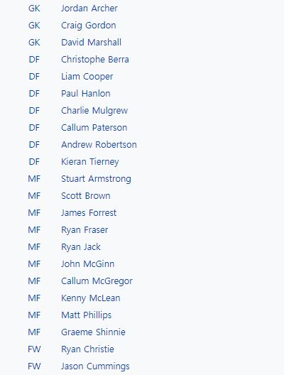 <스코틀랜드, 네덜란드 소집 명단>