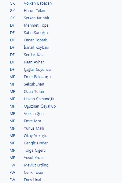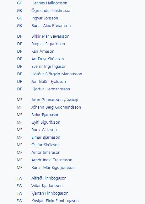 <아이슬란드, 터키 소집 명단>