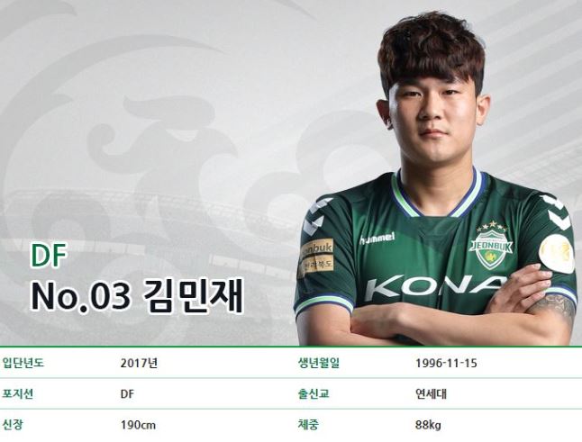 김민재(21) 선수는 키 190cm, 85~88kg대의 체중을 앞세운 탁월한 피지컬에 스피드도 좋고, 몸싸움은 물론 빌드업 능력도 있어 대형 수비수가 될 재목이라는 평가를 받으며 데뷔했다.
