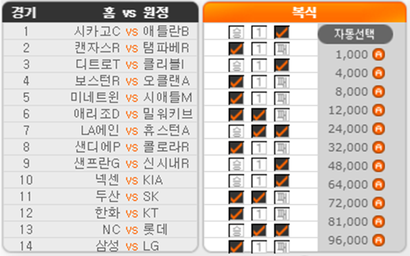 경기번호/ 팀[선발투수] / (추천픽/고려사항)