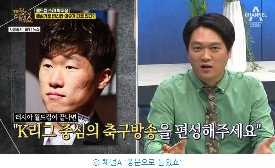 이어 "박지성이 해설가로 도전하는 조건으로 SBS에 K리그 부활에 대한 노력을 요청했다더라"고 전했다.