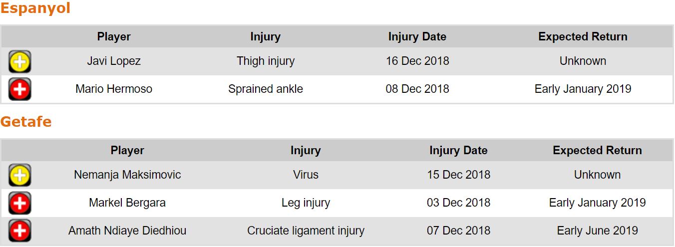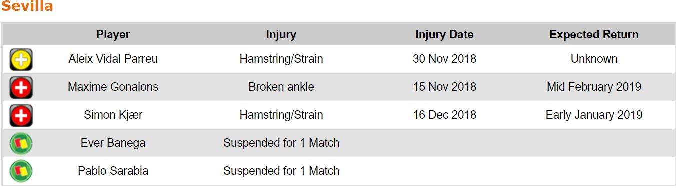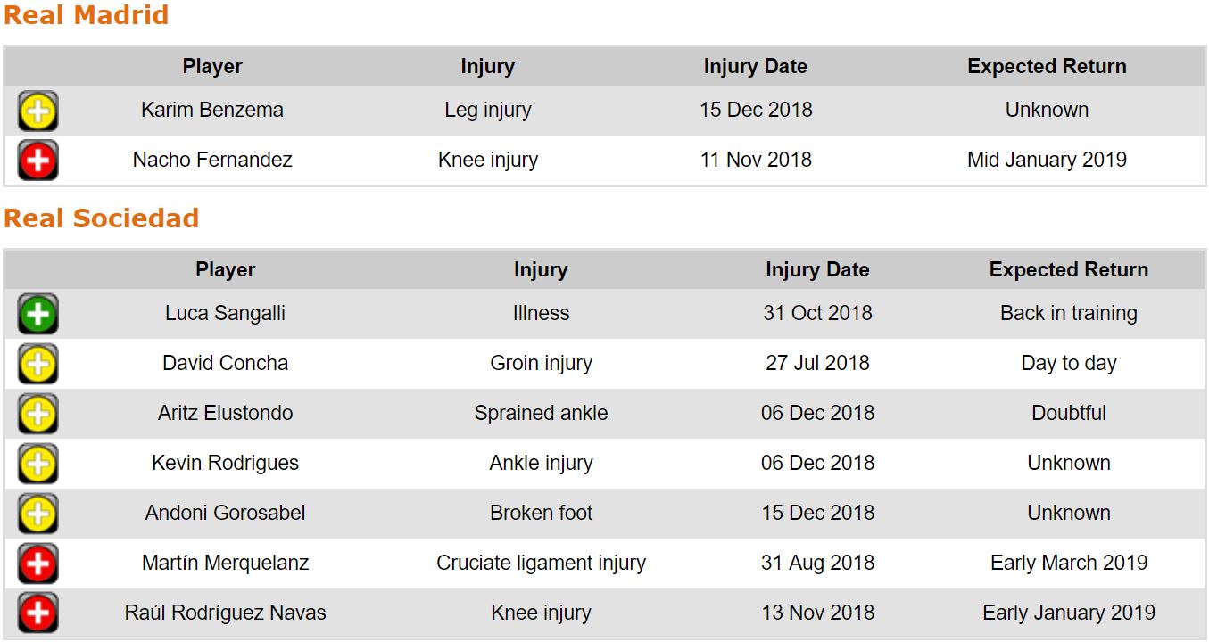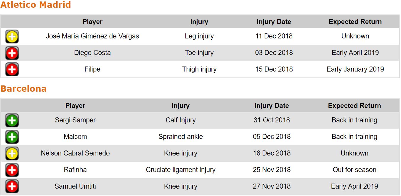 프리메라리가 17라운드 각 팀 부상자 및 결장 예정 선수