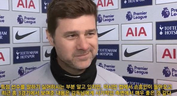 포체티노 감독은 인터뷰 도중 손흥민 이름만 듣고도 엷게 미소를 띄웠답니다 ㅋㅋㅋ