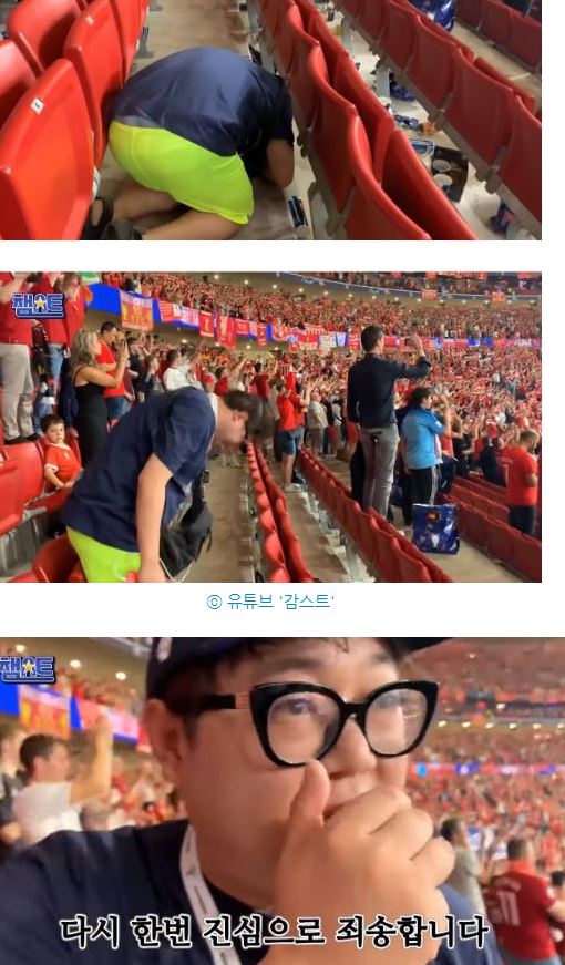 감스트는 리버풀 팬들에게 사과하고 싶다며 큰절을 올렸다. 모자를 벗고 감스트는 팬들에게 큰절을 올렸다