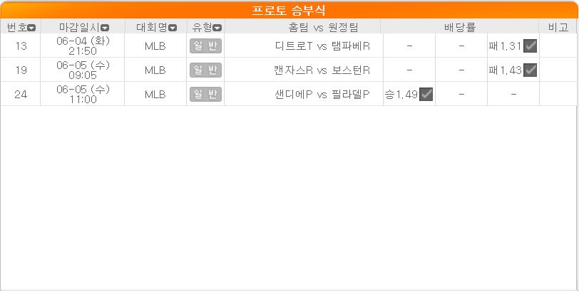 Tip. 수요일 MLB조합 중 위험 부담이 굉장히 큰 편. 애초에 고수익을 노렸다면 20번 경기를 추가하는 것도 고려해 볼 만하다.