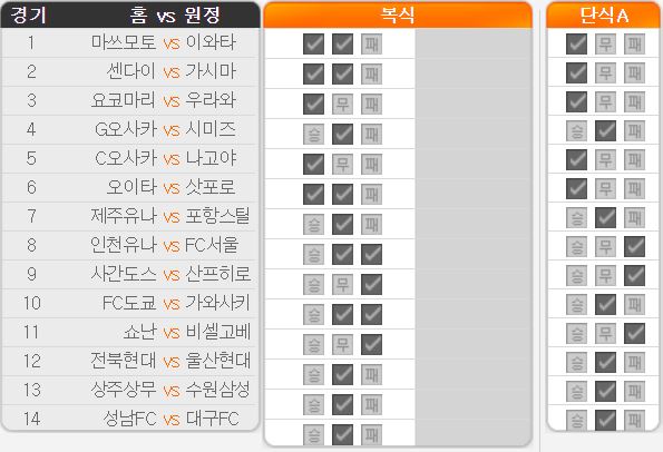 스포츠토토 승무패 25회차 14경기 중복 체크 우선 순위