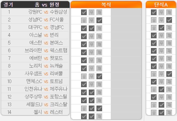 스포츠토토 승무패 29회차 14경기 추천 우선 순위