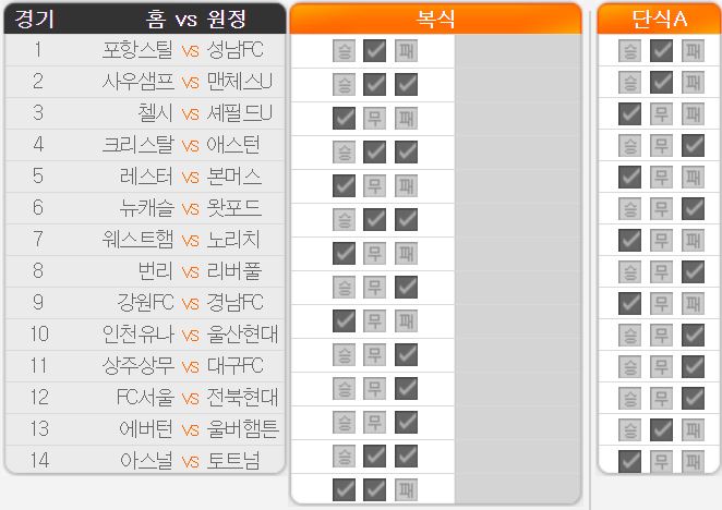 중복 체크 여부: 홈 팀 승 주력, 무승부 부주력. 우선 순위를 비교적 낮게 잡는 것이 좋다.